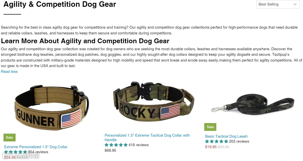 Tactipup主打战术风、户外风的高强度狗项圈,目标受众是对装备要求极高的犬主。通过产品描述、社媒营销、用户案例等,Tactipup强化了品牌的专业形象,这是能够使消费者更愿意为高溢价产品买单的。