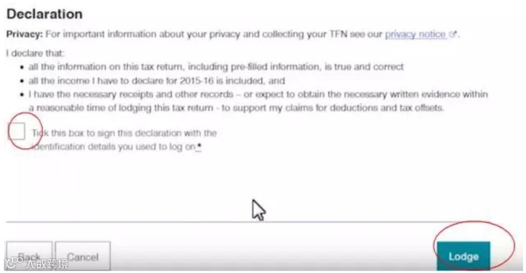 登录ATO服务,点击“Lodge myTax”,依次填写个人信息、退税账户、税务居民状态。