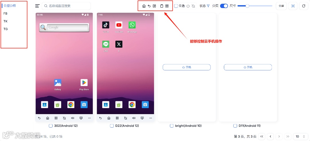 DuoPlus聚焦模式再度升级,在操作页面新增home、返回、切换应用、应用管理4个功能按钮,方便用户控制云手机操作,还将分组列表设置在左侧,云机管理更清晰。