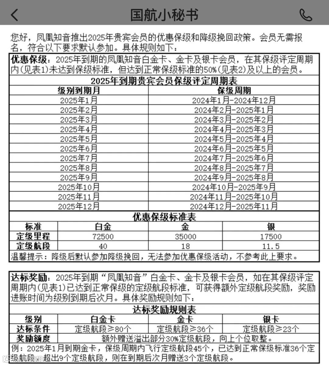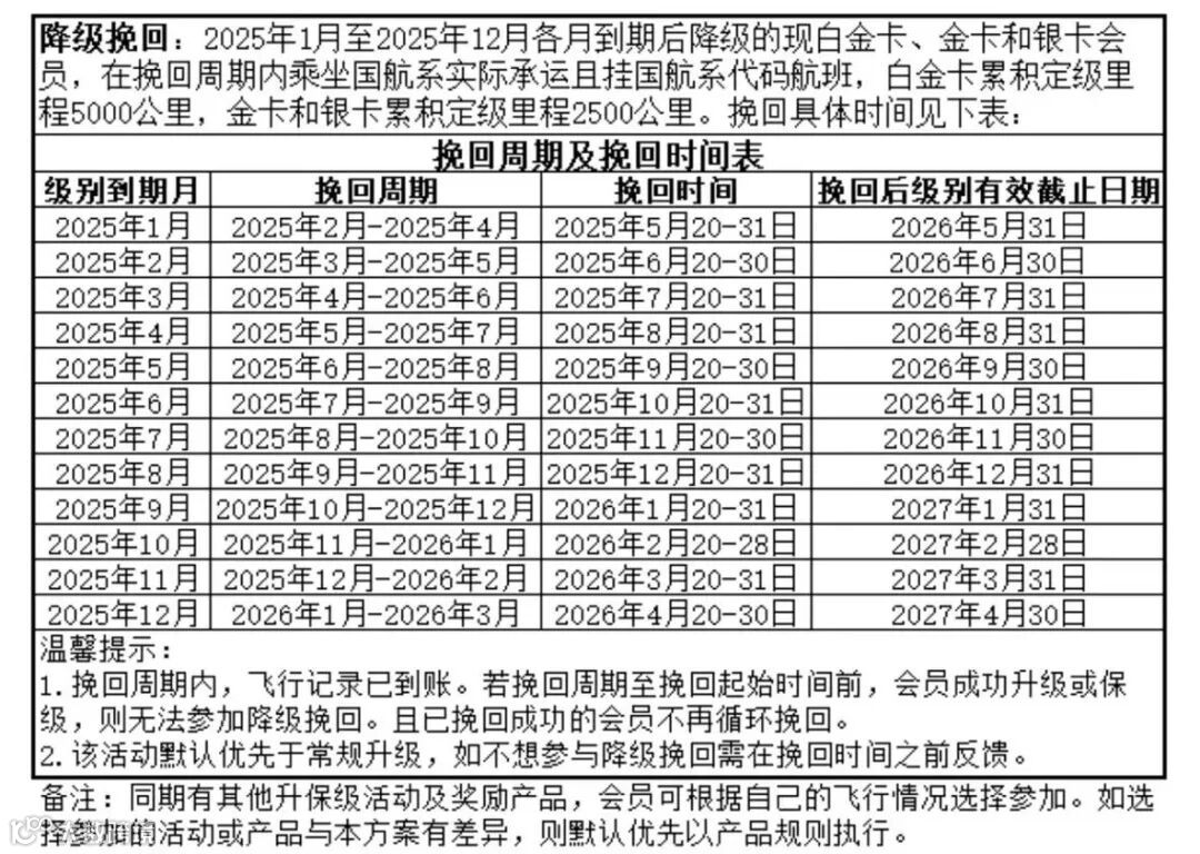 去年基本也有类似的挽回政策,看起来这几年要降级的金卡白金卡根本不需要辛苦保级,等国航来挽回就可以了。。。