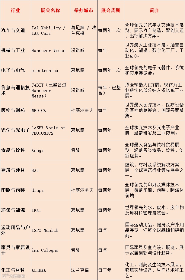德国每年也是会举办挺多展会了,而且各行各业的都会有,大家可以自行根据实际情况选择参加一些展会。