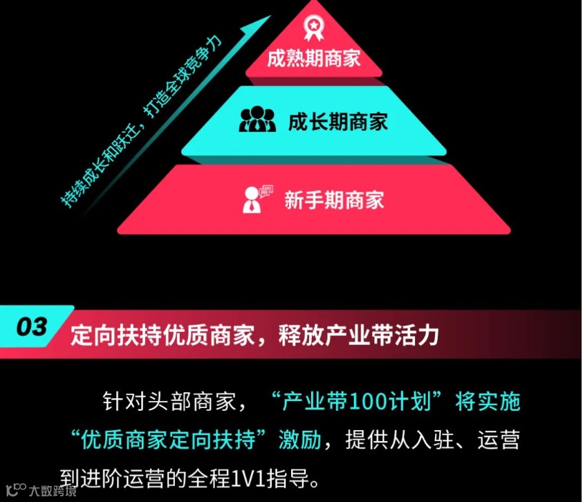 值得注意的是,TikTok Shop的“产业带100计划”还根据商家在不同阶段的需求精心定制了八大权益,与新手、成长和成熟三个成长阶段相适应。这一举措的目的是满足商家多样化的需求,助力他们快速成长,并为爆品的成功培育提供全面支持。