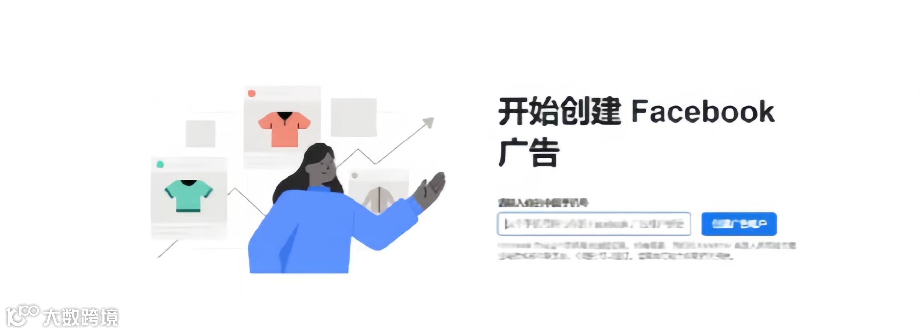 ① 访问Facebook 官网,输入手机号,登录个人账号,点击创建广告账户。