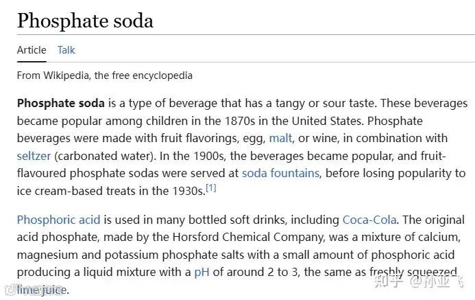 磷酸自19世纪70年代起被广泛用于碳酸饮料中,不仅因其酸味适中,还具备缓冲pH值的能力——其电离后的磷酸二氢根具有弱酸性质,能稳定饮料酸度,避免因浓度波动导致口感变化[2]。此外,磷酸盐是人体ATP、DNA及骨骼成分之一,具备一定生物相容性,且具有一定防腐作用,在食品添加剂尚未普及的时代尤为实用[2]。