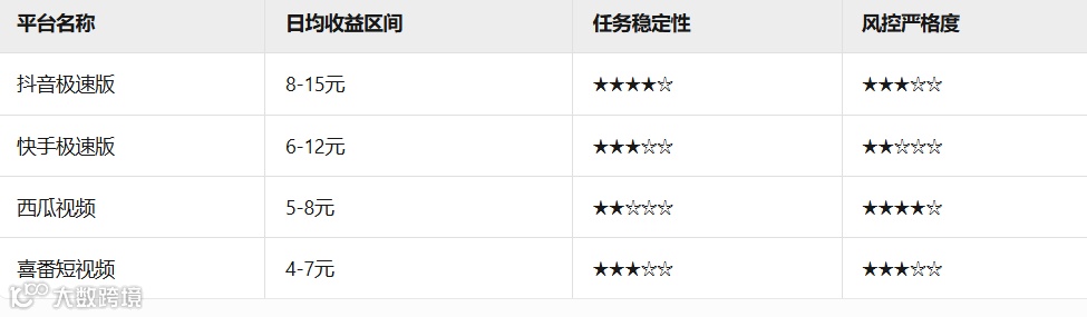 理想收益模型 = 主平台(抖音极速版)×1.5 + 辅平台(快手极速版)×1.2 + 补充平台(西瓜视频)×0.8