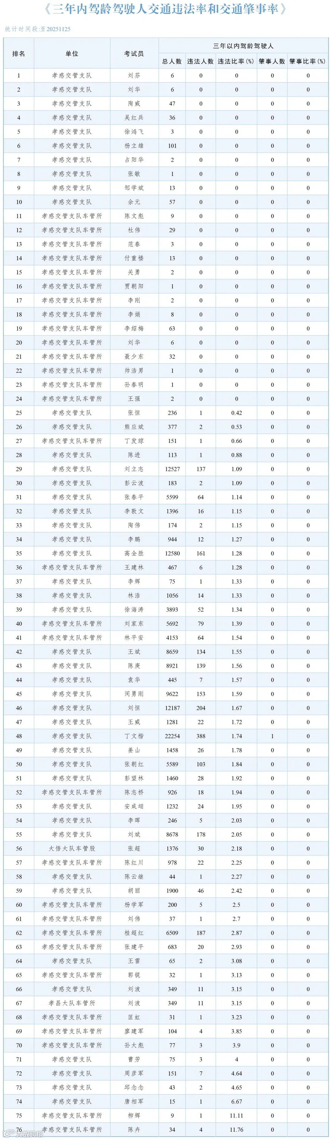 广大驾驶人在行车过程中,要严格遵守交通法规安全驾驶,下面公布2025年11月份统计的三年内驾龄驾驶人道路交通违法情况: