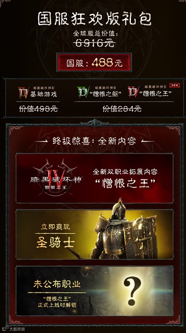除此之外,国服的下一档次488版本礼包,对于核心暗黑玩家来说,同样是个极具性价比的选择。