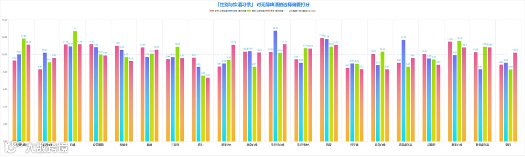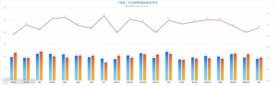 男性更倾向浓烈、苦味明显的口感,如皆爱、喜力和绿骑士;女性则对埃斯特拉、新零皮尔森、新零IPA和百威评价更高。