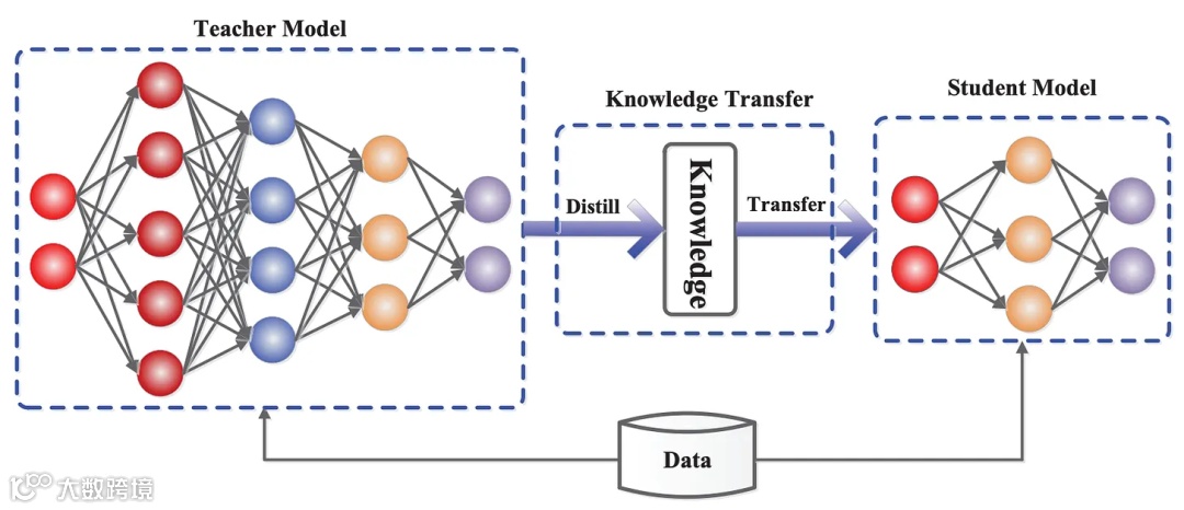 知识蒸馏是一种机器学习中标准的模型压缩方法,它将复杂的模型看做“教师模型”,把简单的模型看做“学生模型”,通过老师教学生的方式将知识迁移过去。
