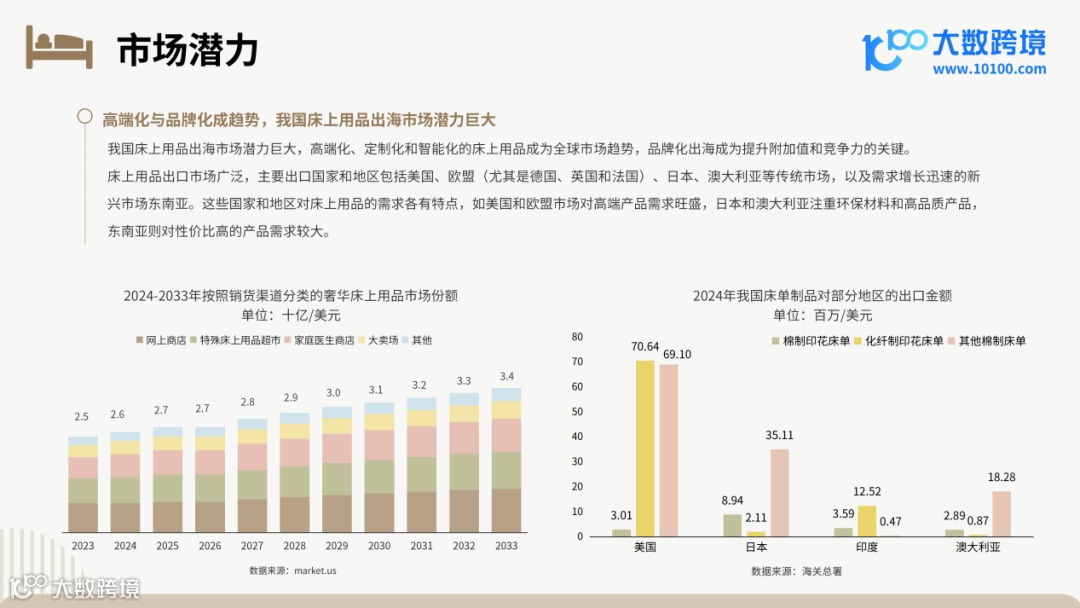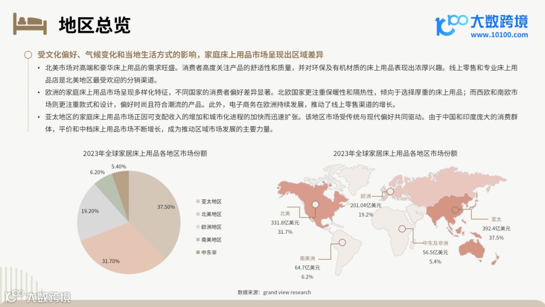 希望大数跨境(10100.com)这份报告可以帮助相关床品企业成功出海。如需获取完整内容,关注【大数跨境】公众号,回复【2025全球床上用品市场洞察报告】即可免费下载。