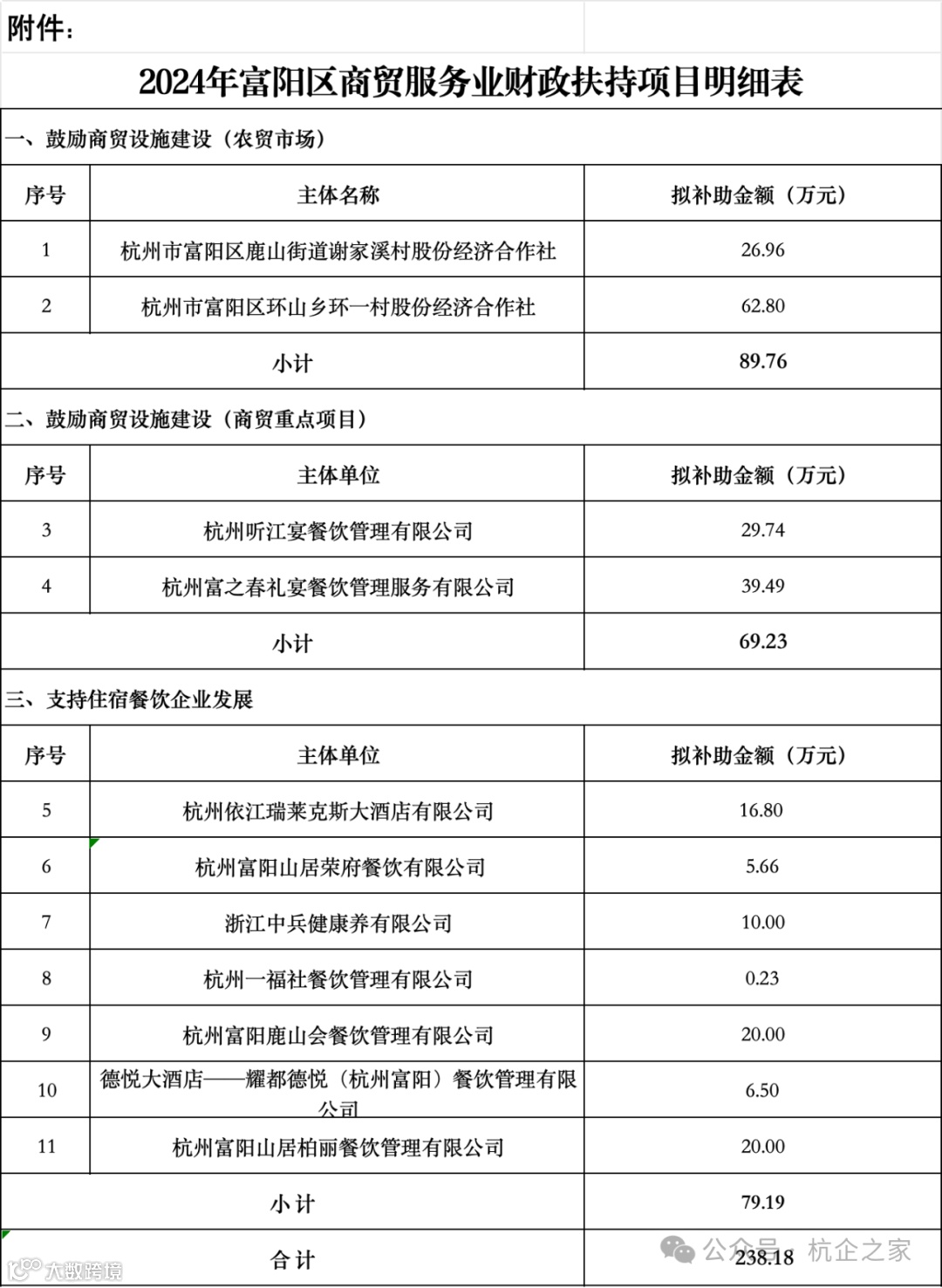 附件:2024年富阳区商贸服务业财政扶持项目明细表 2024年富阳区商贸服务业财政扶持项目明细表