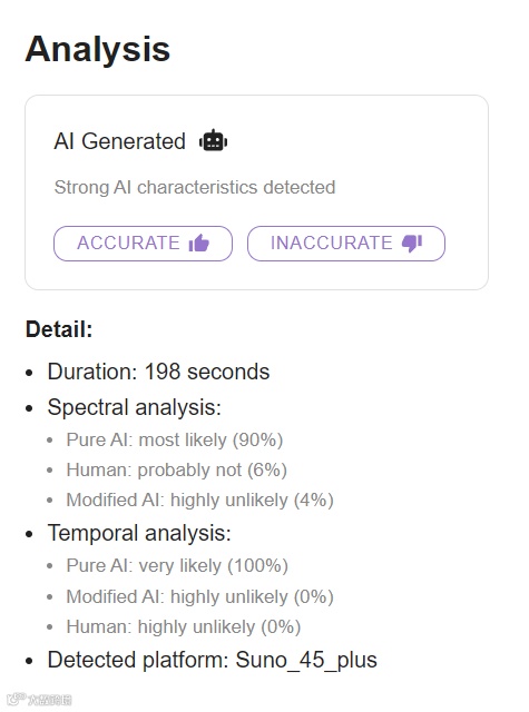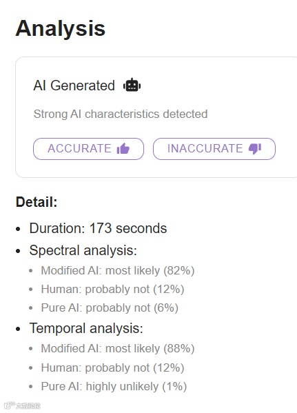 反而是有些商业的、付费的AI音乐检测工具,存在识别正确率不高的情况。