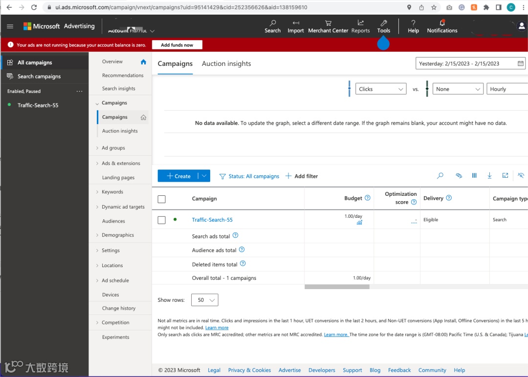 预算越高,您从Bing Ads获得的点击次数就越多。预算设置得越低,那么看到这些广告的人就越少,点击它们的人就越少;这意味着我们不仅整体曝光率较低,而且转化(销售)的机会也较少。