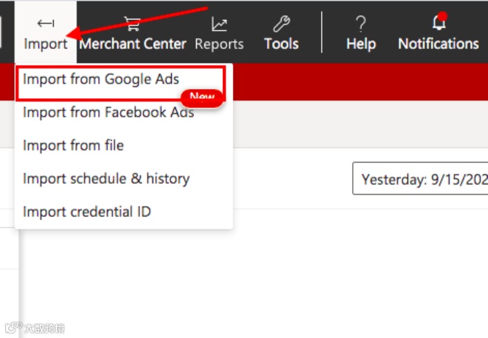 3. 选择“导入广告系列”,然后从下拉菜单中选择“从 Google Ads导入”。