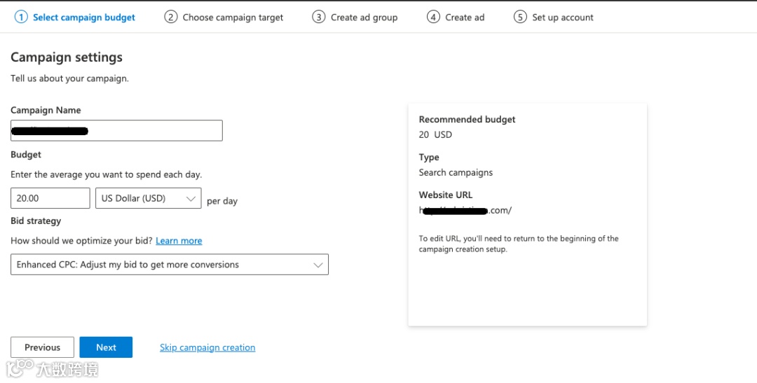 5.最大化转化次数:此策略使用 Bing Ads的算法来在您设定的预算内获得最大转化次数。
