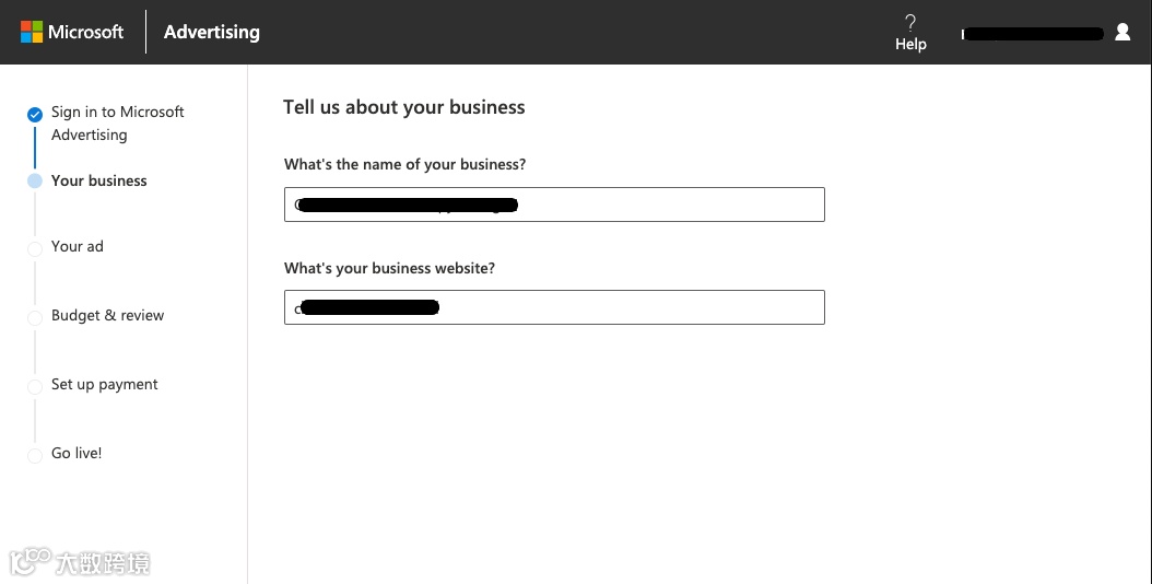 向Microsoft 提供有关您的业务的信息,并指出您希望将广告定位到全球哪个位置。