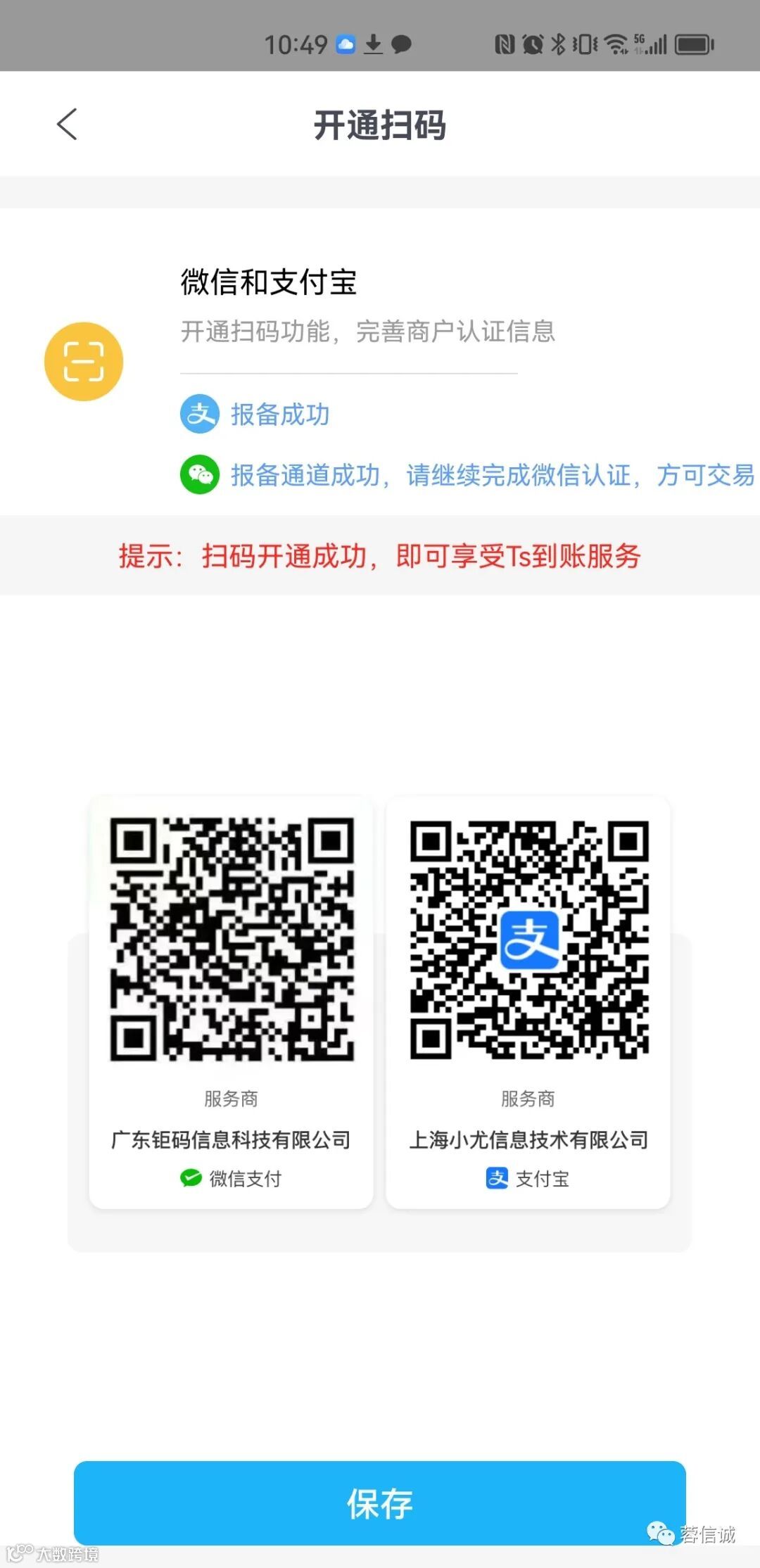 二:点击开通扫码,跟着提示完善相应信息,并保存二维码图片