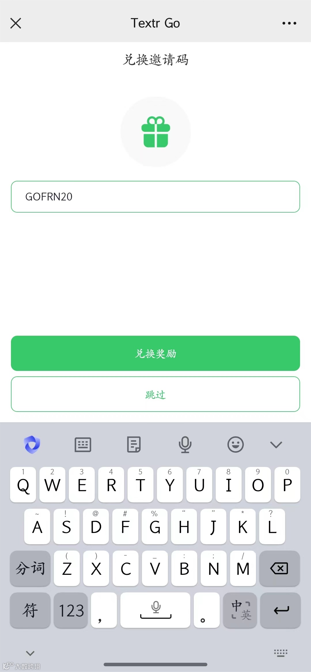 2. 注册后输入邀请码GOFRN20兑换奖励,获取账户初始余额。