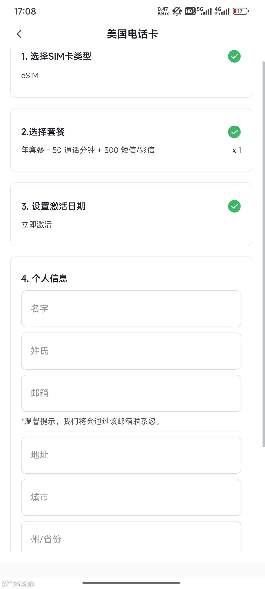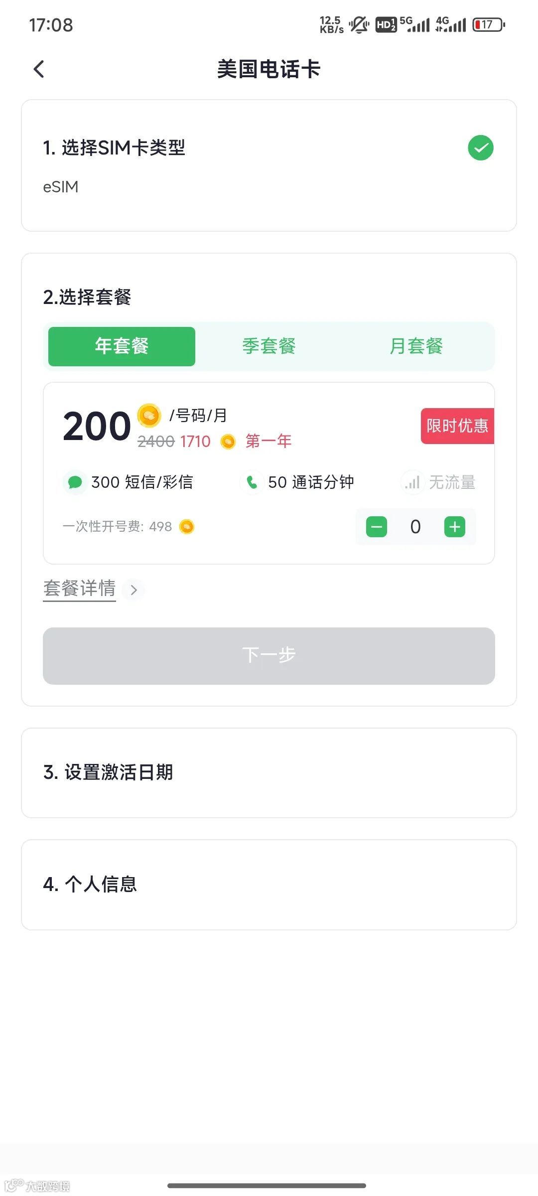 4. 选择套餐周期(建议年付更优惠),设定激活时间,填写信息并完成支付即可。