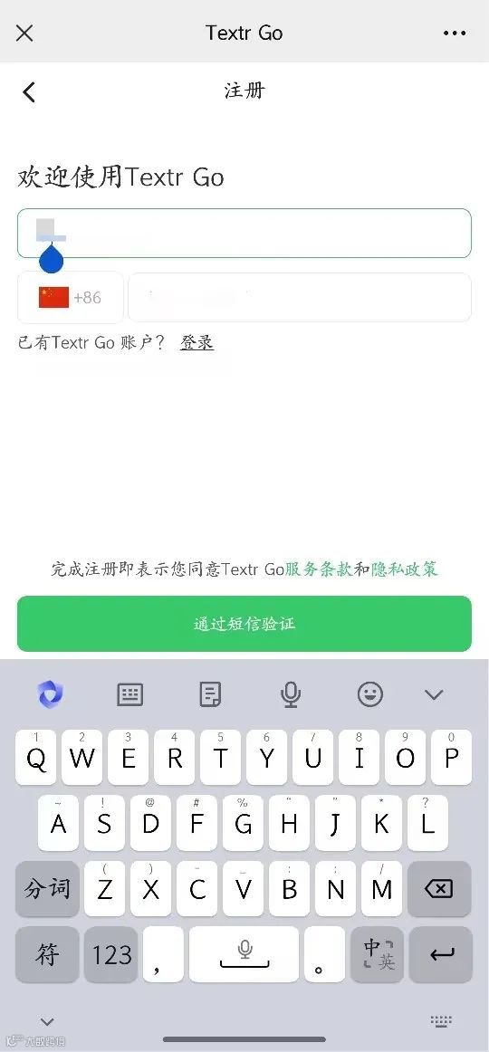 1. 访问Textr Go官网(外部链接已过滤)进行注册,填写用户名与手机号完成验证。