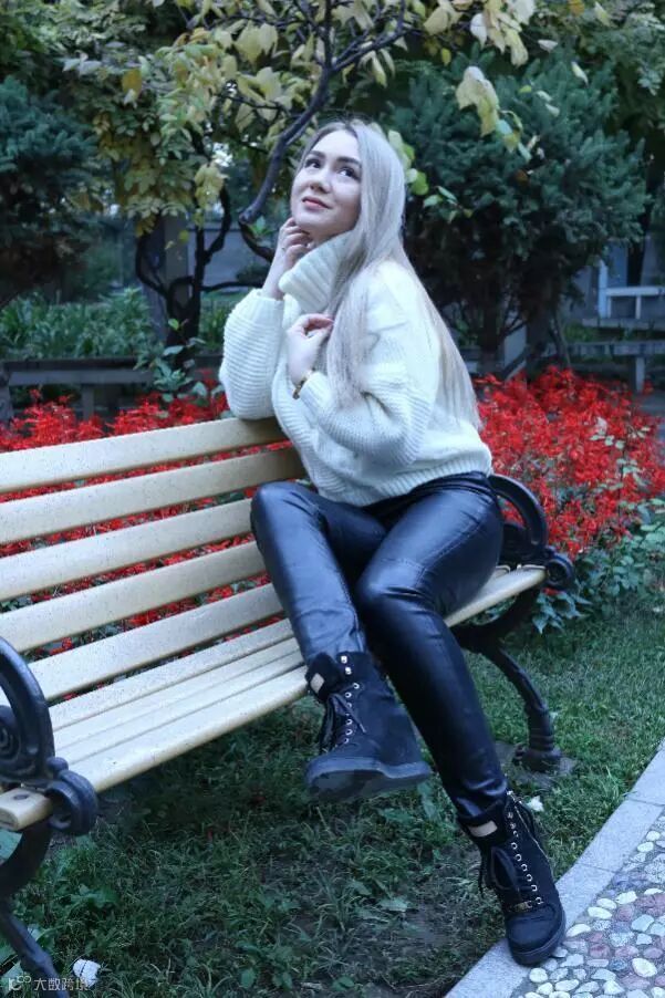 巧笑倩兮,美目盼兮,灰色的风衣掩盖不住青春的容颜,阵阵秋风吹不乱轻柔的秀发。