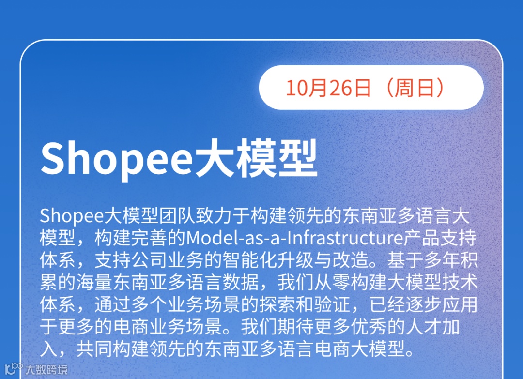 社招 | 一天走完全流程,Shopee大模型团队10月26日专场来咯