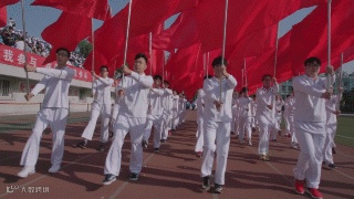 红旗方阵的学子们手举鲜红的旗帜向我们走来,形成了一道独特的风景线,展现着信息科大人的火热激情~
