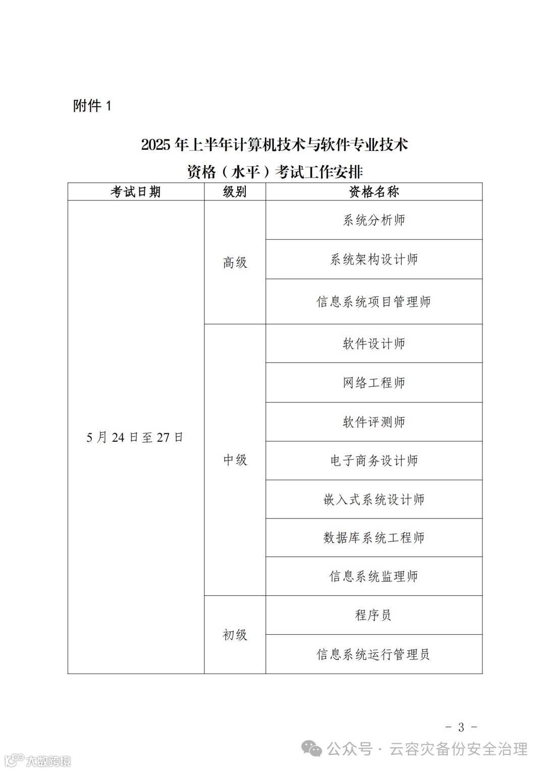 关于2025年度计算机技术与软件专业技术资格(水平)考试工作安排及有关事项的通知