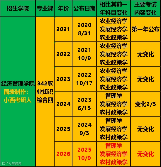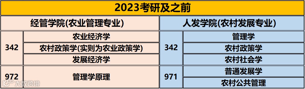 西北农林科技大学共有2个学院(经管学院、人发学院)在研究生招生考试中考察342农业知识综合四,经管学院(农业管理专业)、人发学院(农村发展专业)历年的专业课关系是这样的: