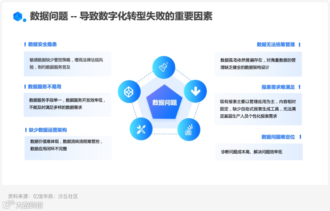 总的来看,A企业在数据方面存在以下6大问题,也是导致数字化转型失败的重要因素: