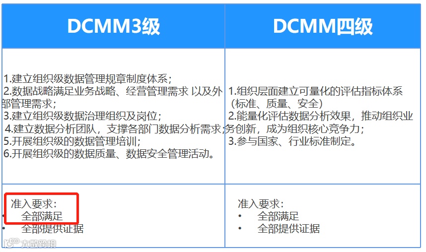 能力红线方面,DCMM三级需满足的红线要求略有提高,DCMM四级的红线要求没有变化,与2022版保持一致。