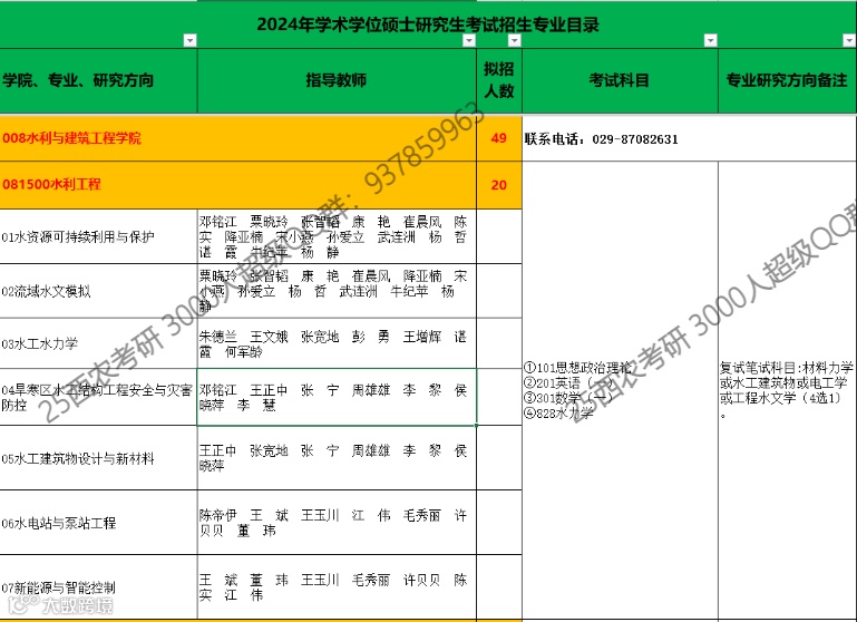 【观今】2024水利与建筑工程学院-水利工程专业招生目录(主要看拟招人数,也就是录取名额)