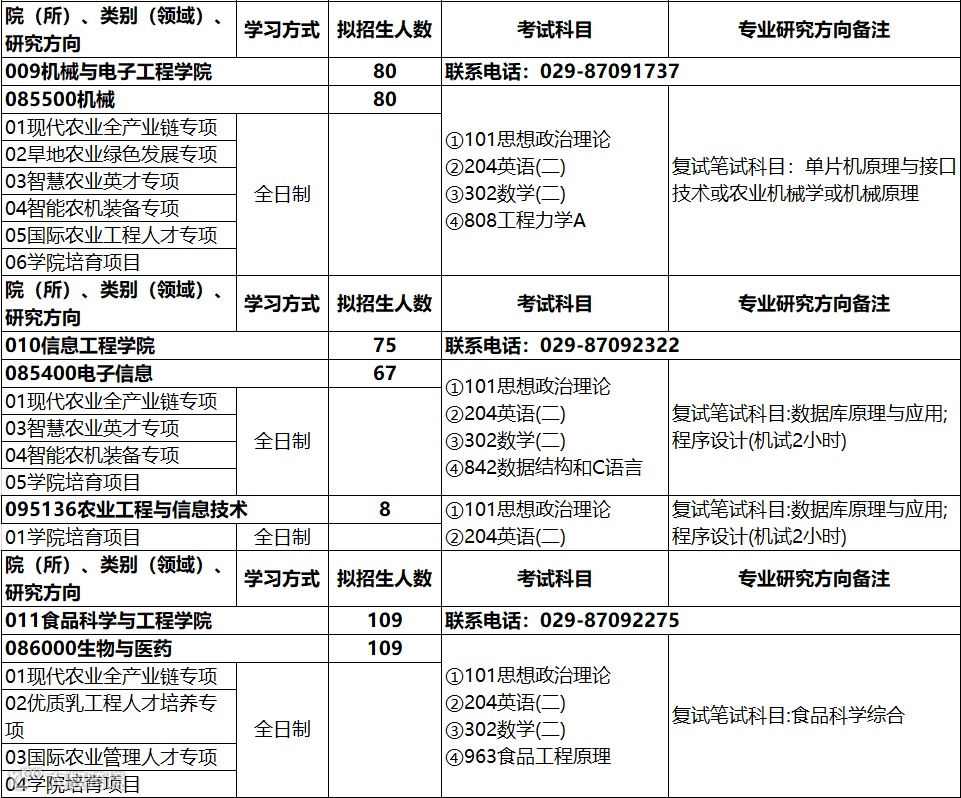 导读:西北农林科技大学2022年专业学位硕士研究生招生专业目录