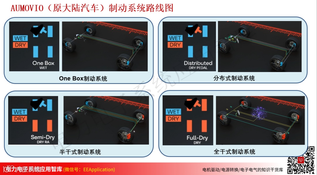 随着汽车数字化、互联化、电气化程度不断提升以及自动驾驶功能逐步增强,制动系统需满足更多元的附加要求。为了应对客户多元化的制动需求,AUMOVIO也制定了其制动系统发展路线图,沿着传统制动系统,one box线控制动系统,分布式制动系统,半干式制动系统,全干式制动系统的技术路线,迭代制动产品开发。