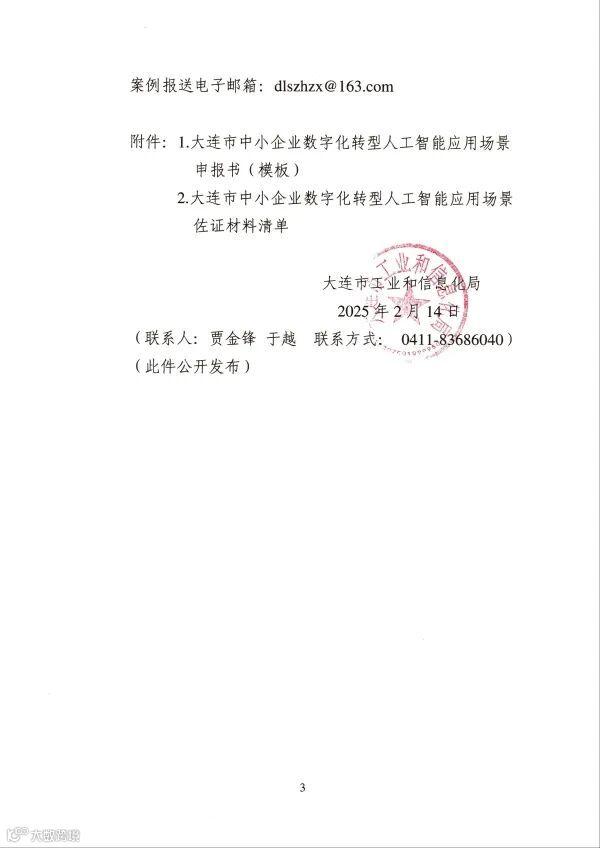 依科信息 | 关于征集大连市中小企业数字化转型人工智能应用场景的通知 依科创新在线