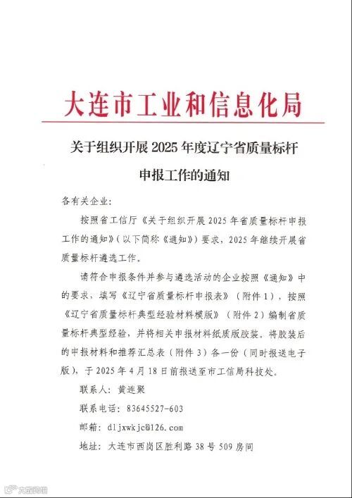 依科信息 | 关于组织开展2025年度辽宁省质量标杆申报工作的通知 依科创新在线