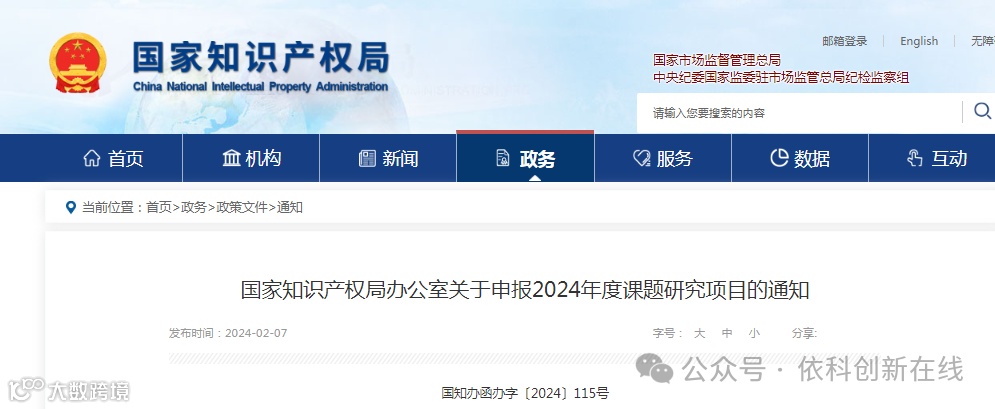 2024年度国家知识产权局课题研究项目申报工作已经启动,现将有关事项通知如下: