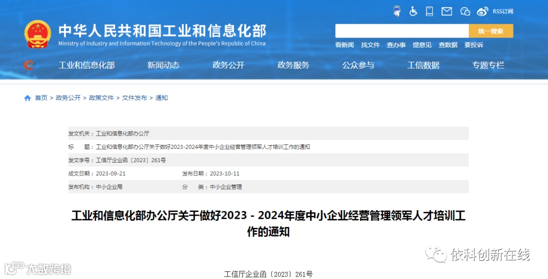 工业和信息化部办公厅关于做好2023-2024年度中小企业经营管理领军人才培训工作的通知