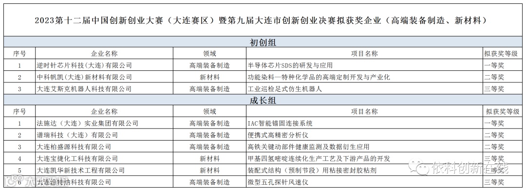 2023第十二届中国创新创业大赛(大连赛区)暨第九届大连市创新创业大赛拟获奖企业名单公示的通知