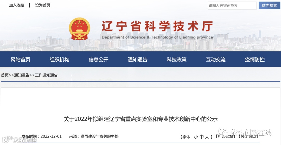 内容来自辽宁省科学技术厅,由依科创新在线收集整理。版权归原创者所有。如标错来源或侵权,请跟我们联系协商或删除。