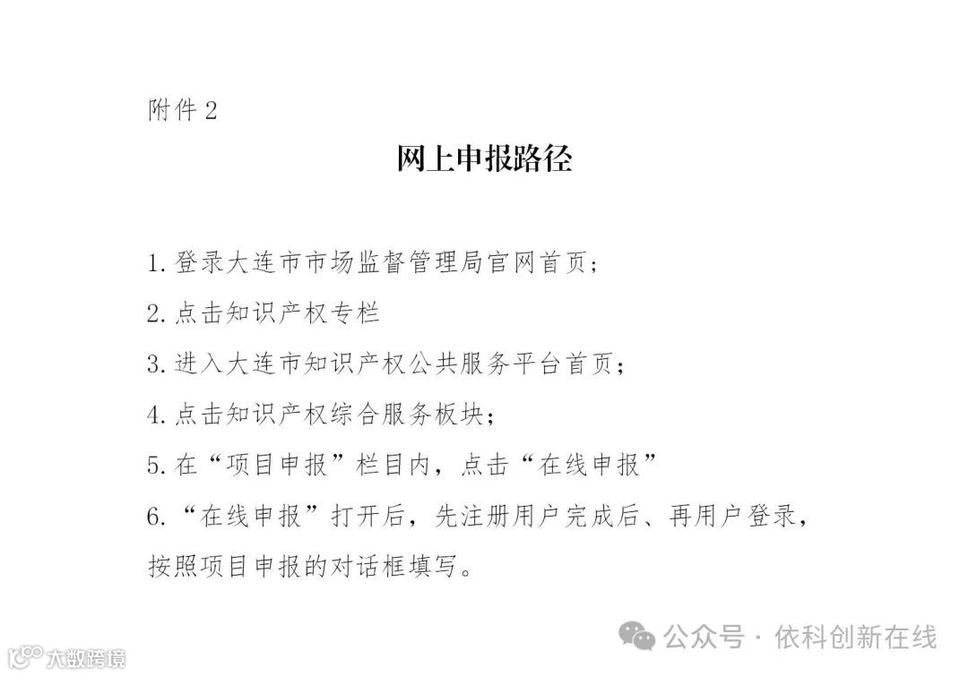 (二)申报主体通过大连市公共服务平台完成线上申报,申报路径见附件2。