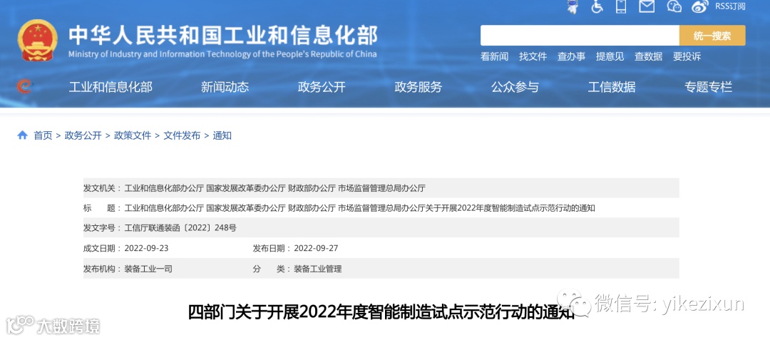 为贯彻落实《“十四五”智能制造发展规划》,工业和信息化部、国家发展改革委、财政部、市场监督管理总局联合开展2022年度智能制造试点示范行动。有关事项通知如下:
