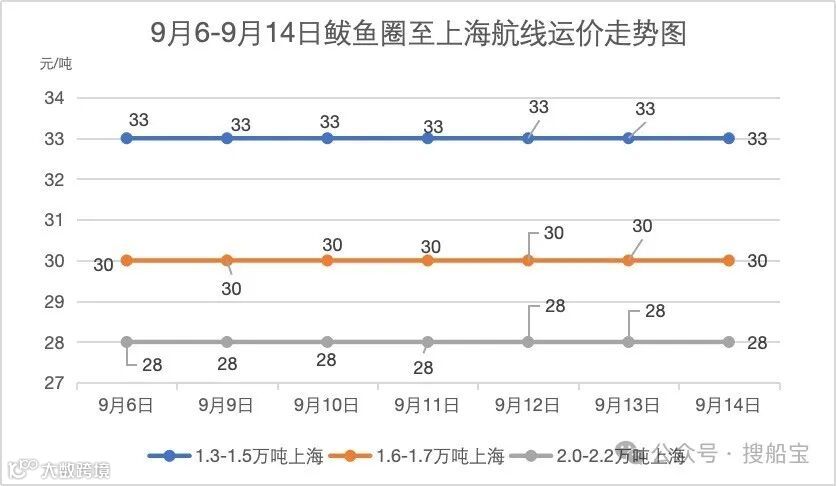 一、9月9-9月14日鲅鱼圈各吨位、航线运价汇总图