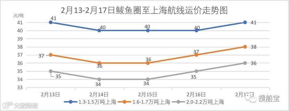 一、2月13-2月17日鲅鱼圈各吨位、航线运价汇总图