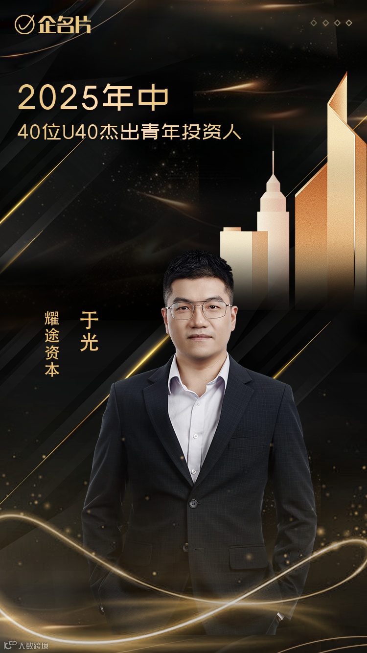 同时,在企名片发起的「2025年中U40杰出青年投资人&财务顾问」评选中,耀途资本执行董事于光荣膺“2025年中40位U40杰出青年投资人”。该奖项旨在表彰具备敏锐洞察、专业能力突出且持续耕耘在一线的优秀青年投资人。