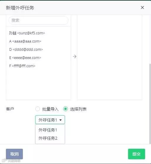 3、设置需要参与到外呼任务的客服人员,点击即可添加至右侧栏