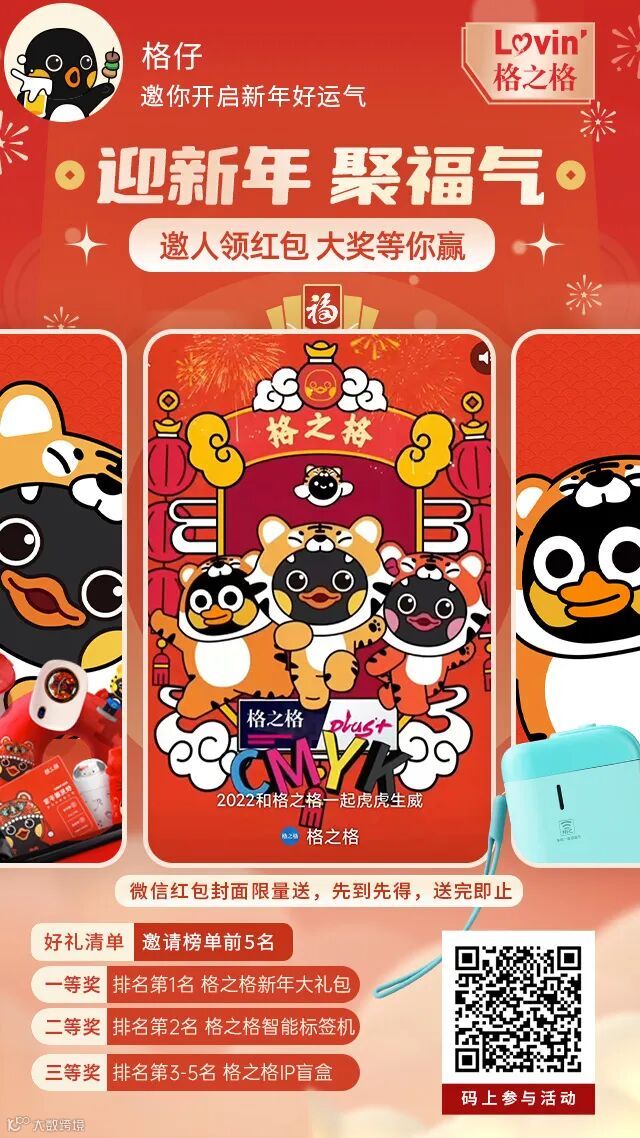 2.成功邀请2名新粉丝参与活动,即可获得格之格新年限定红包封面;