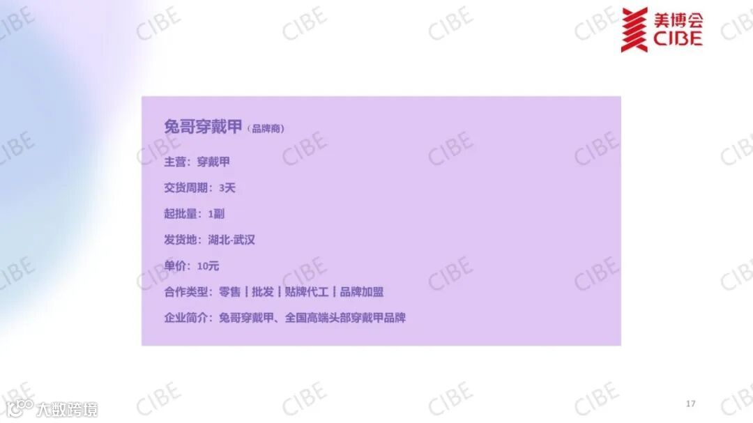 为更好实现穿戴甲行业供需双方精准匹配,CIBE美甲美睫穿戴甲展特推出线上供需对接服务,将定期发布全国近百家穿戴甲供应商最新货源资讯,为全国各地的企业老板提供一个线上快速找货、找项目的机会!