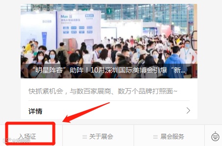 ①关注“美博会”公众号,点击菜单栏“入场证”进入预登记界面。