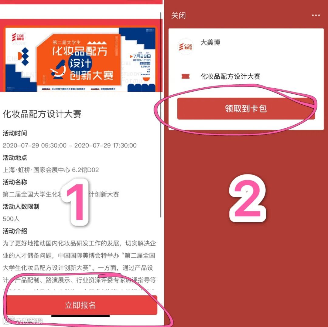 3.进场时出席活动卡券(微信-我-卡包-票证-化妆品配方设计大赛)